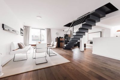 Die 5–Zimmer–Wohnung erstreckt sich über das 5. und 6. OG (bzw. DG) des 2015 fertiggestellten Neubauprojekts „Cube“. Das Gebäude erinnert in seiner Gestalt an einen futuristischen weißen Würfel.