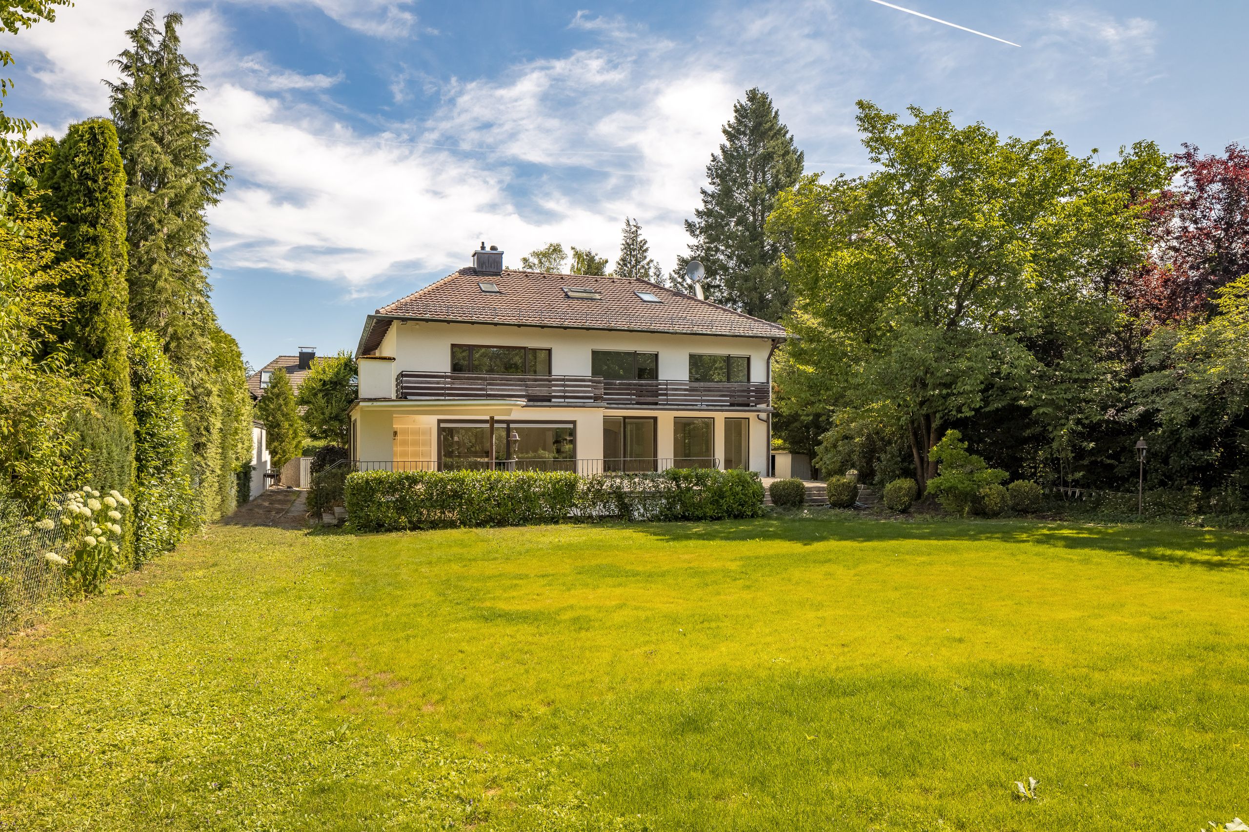 Das exklusiv von uns angebotene, freistehende Objekt wurde 1965 in solider Ziegelbauweise auf einem Grundstück von 1485 m² im begehrten Villenvorort Grünwald erbaut.