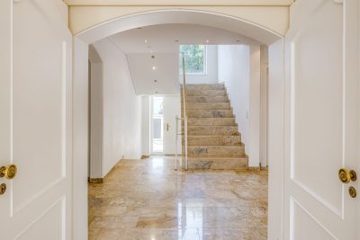 - Bodenbeläge (größtenteils erneuert in 2010): cremefarbener Teppichboden kombiniert mit beigefarbenen Marmor auf allen Etagen