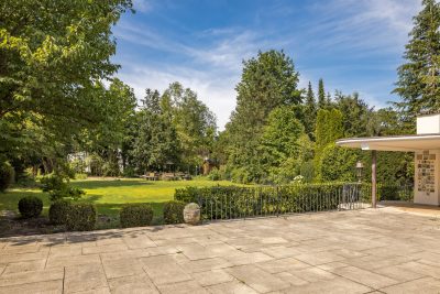 Umgeben von prächtigen Bäumen, liegt das Objekt wunderschön eingebettet in einem parkähnlichen Garten, der dank seiner perfekten Ausrichtung nach Süden und Westen viel Sonne genießt. Eine große Naturstein-Terrasse, ein Grillplatz, alte Bäume und blühende Sträucher schaffen ein Outdoor-Paradies für die gesamte Familie.