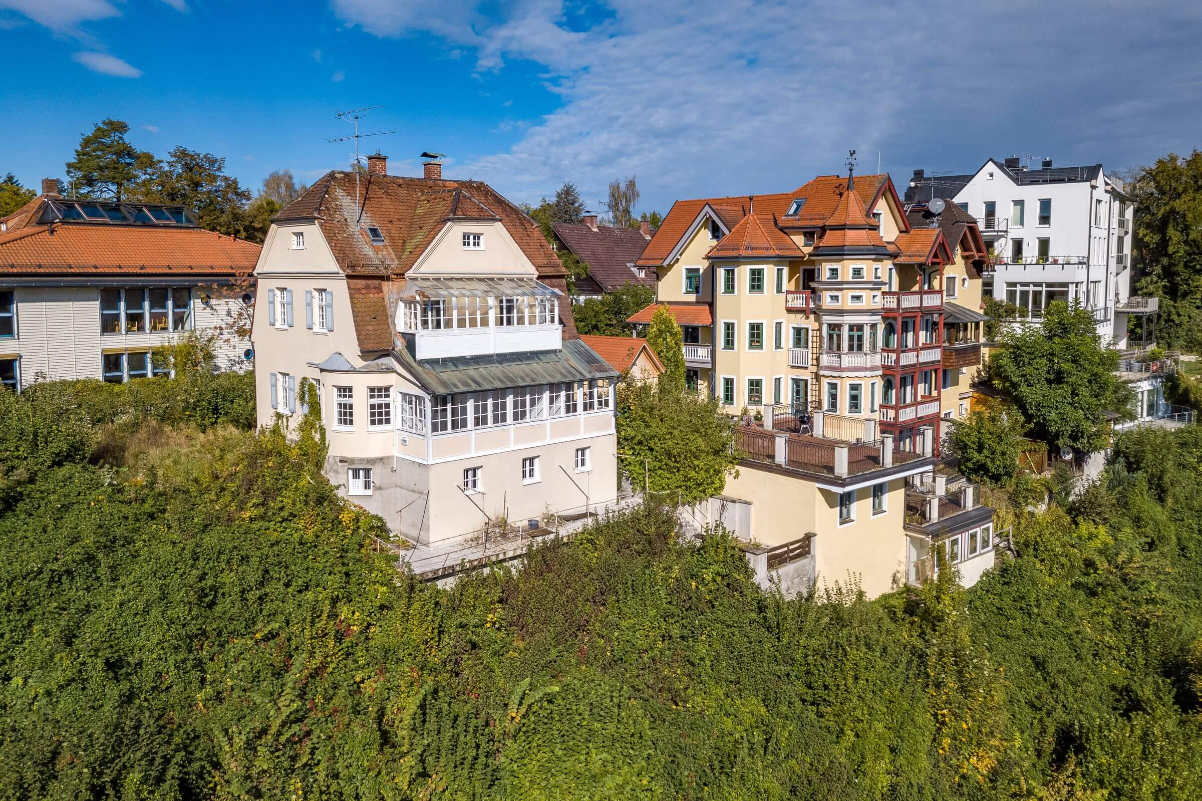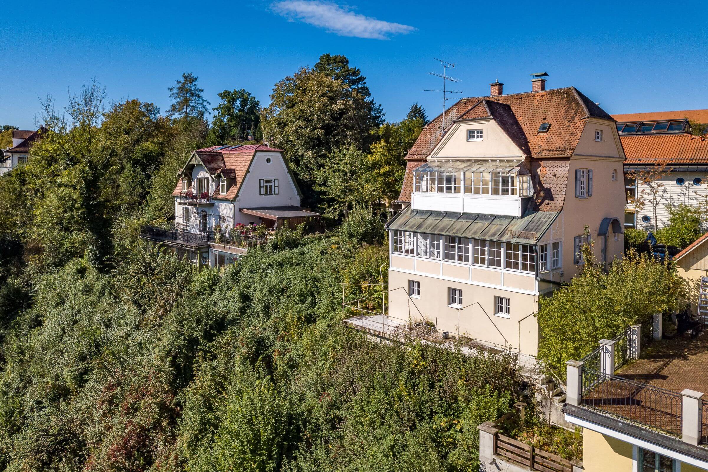 Mit seinen original erhaltenen Details vermittelt es ein besonderes historisches Flair und befindet sich in einmaliger Lage an der Isarhochkante, zentral und doch ruhig, nur wenige Schritte vom Stadtzentrum Pullach entfernt.